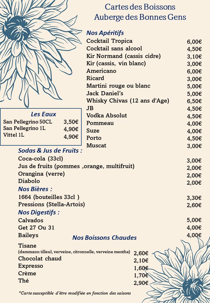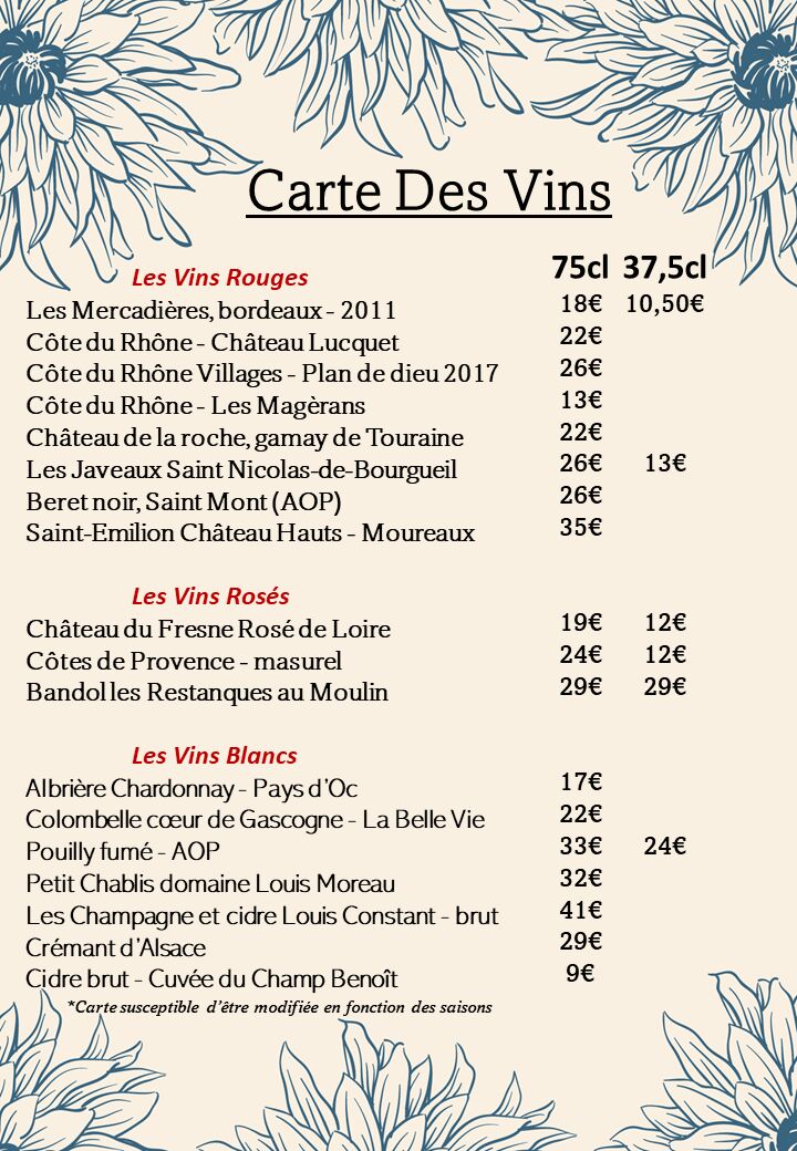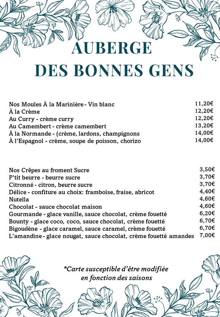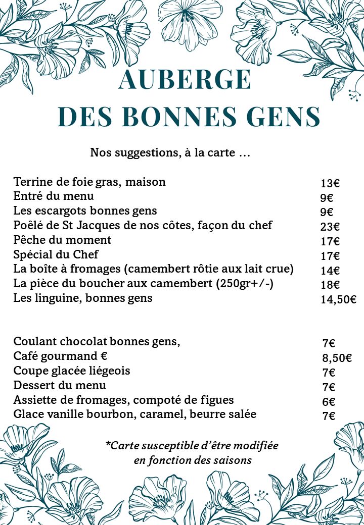 carte  et menu visible sur notre site et  actualisé régulièrement